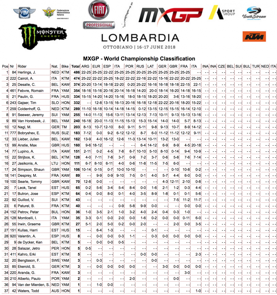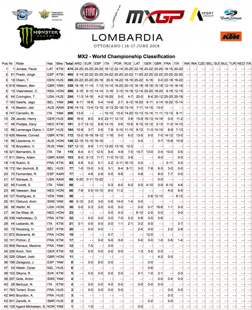 2018 MX GP of Lombardia Results