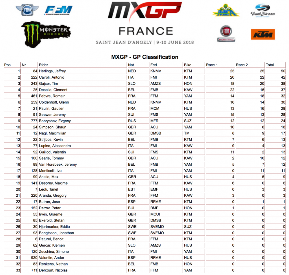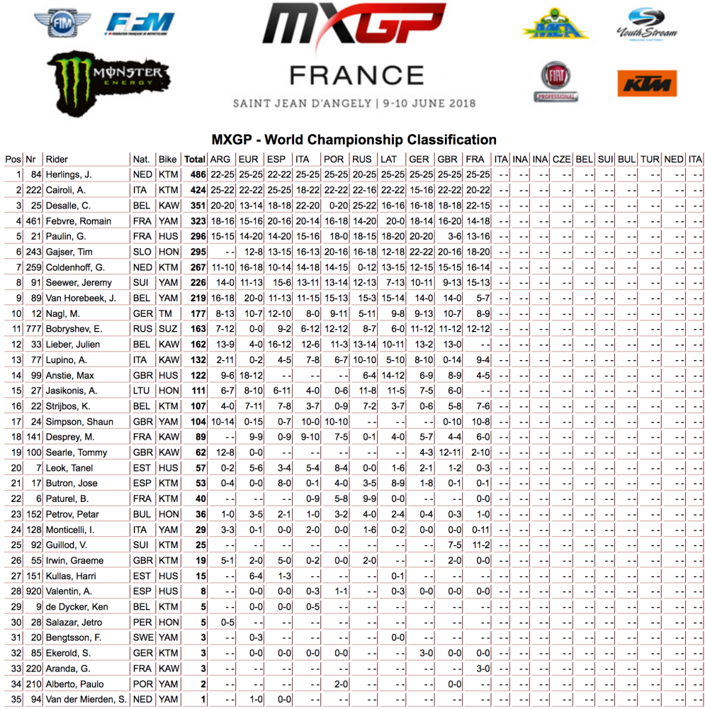 Herlings has now stretched his points advantage to 62 points over Cairoli at the halfway point in the championship.
