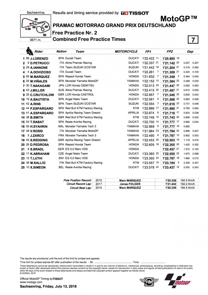 2018 German MotoGP Friday Results