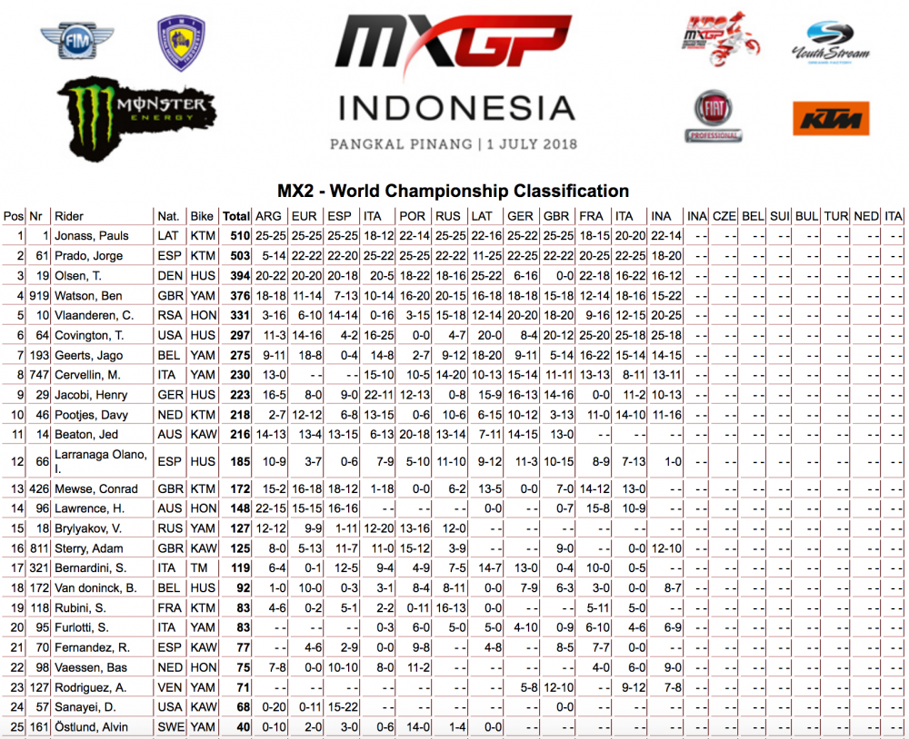 2018 MX GP of Indonesia Results