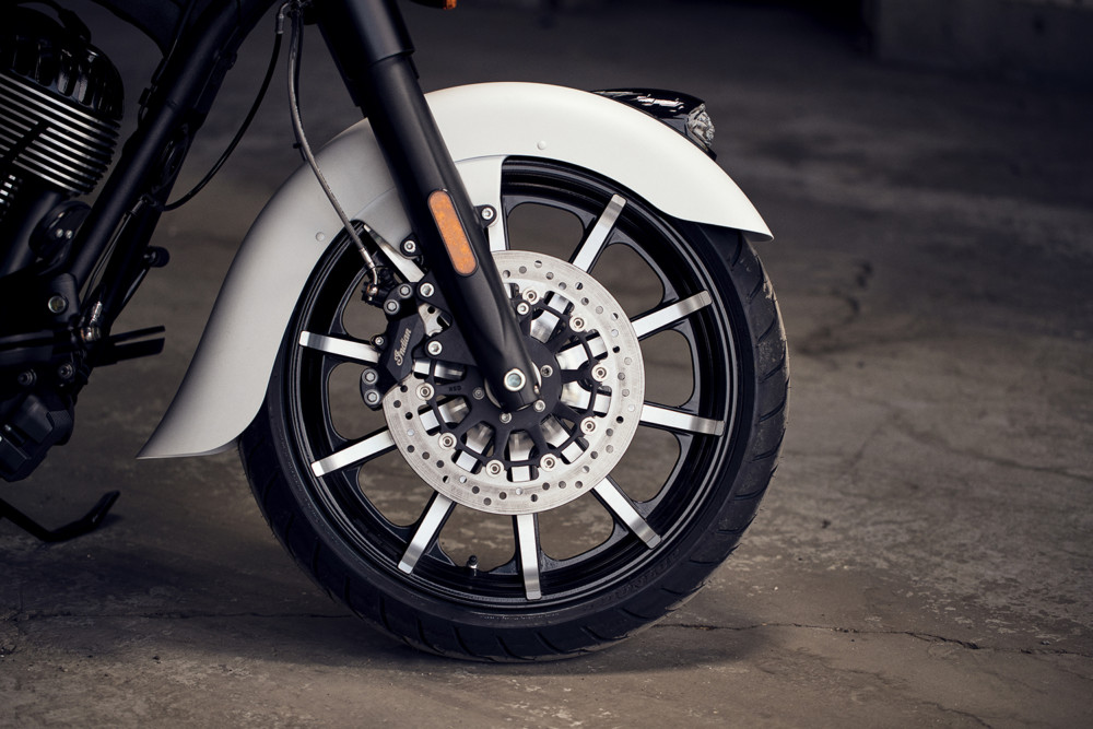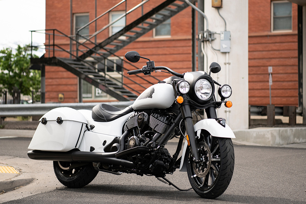 Springfield Dark Horse is now offered in two colors –Thunder Black Smoke and a new White Smoke option. Also, notable for the 2019 Springfield Dark Horse is the addition of the iconic Indian headdress on the front fender and a 19” contrast-cut wheel. The front highway bars and windshield were also removed to punctuate its sleek, streamlined stance.