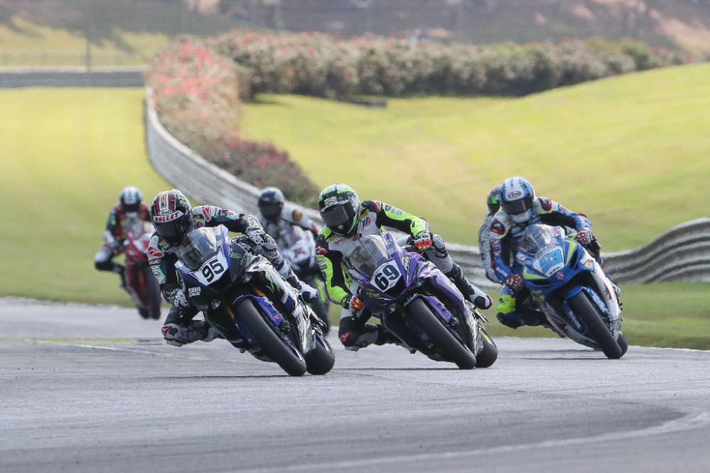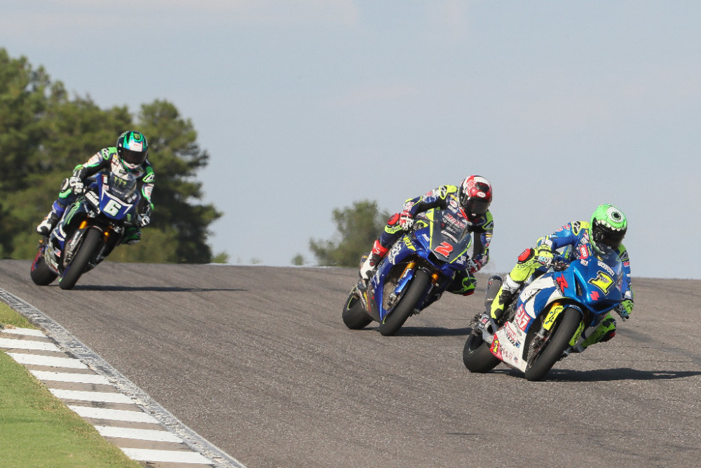 In Supersport, Rickdiculous Racing’s Hayden Gillim, who has been developing somewhat of a reputation as a “rain rider” this season, with his two previous wins occurring in wet weather, showed his prowess on a dry track when he got the victory over Monster Energy/Yamaha Extended Service/Graves/Yamaha’s JD Beach, who finished second in Saturday’s race after already clinching the class championship in New Jersey. M4 ECSTAR Suzuki rider Valentin Debise returned to form after recovering from his crash in Pittsburgh two rounds ago, and he finished third.