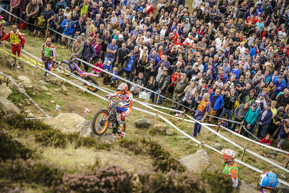 Toni Bou, who didn’t technically need the win today in Silsden to be proclaimed champion, but the Repsol Honda Team rider nevertheless went all out to take the new world title in style. The list now totalling twelve titles in a row in the outdoor season stand alongside the other twelve in the indoor season. On the day, Bou took control of the terrain and finished off the competition over the final sections of the course to mathematically seal top championship honours.