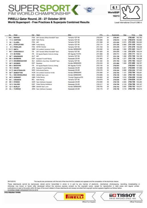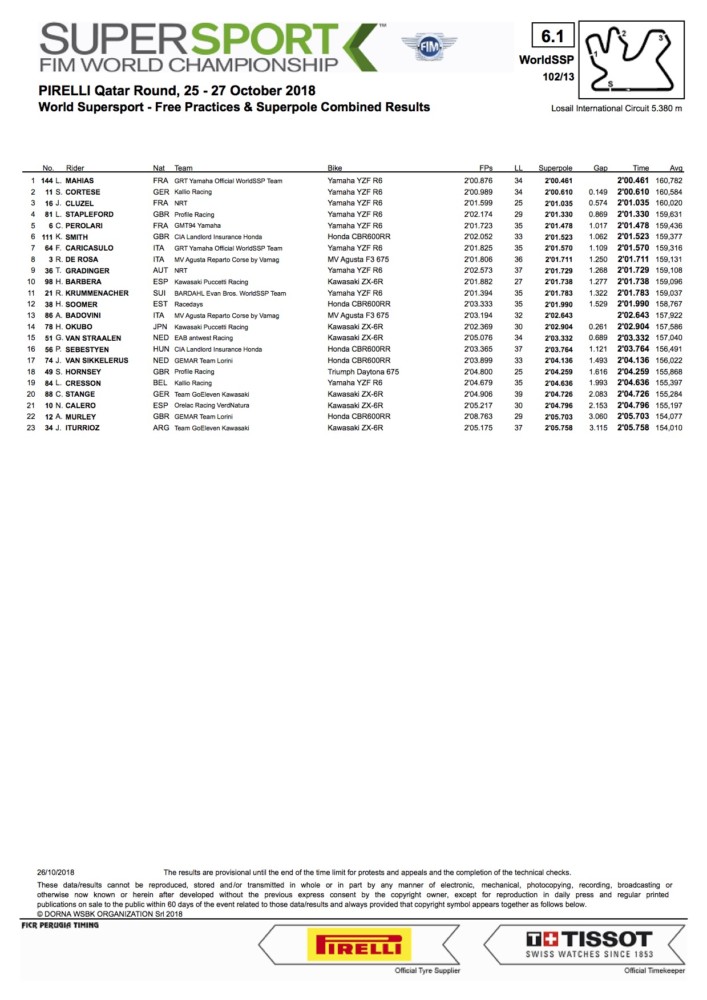 2018 Qatar WorldSSP Superpole Results