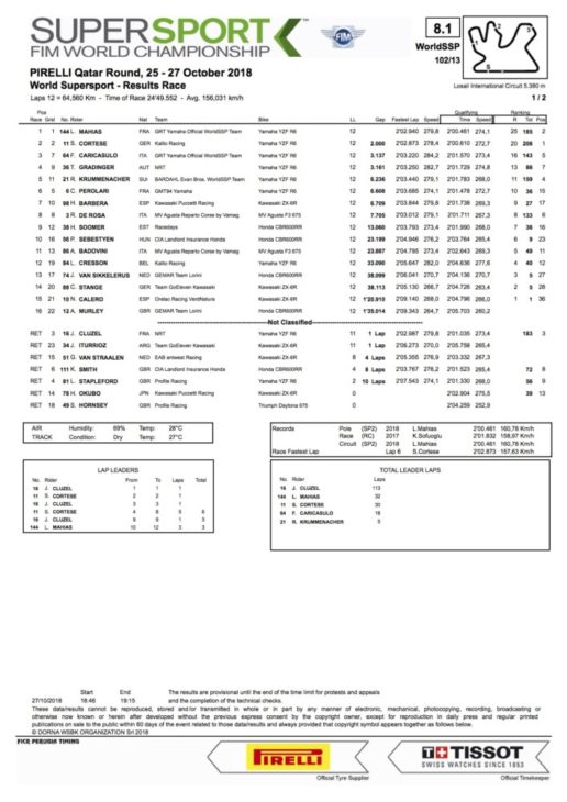 2018 Qatar WorldSSP Race Results
