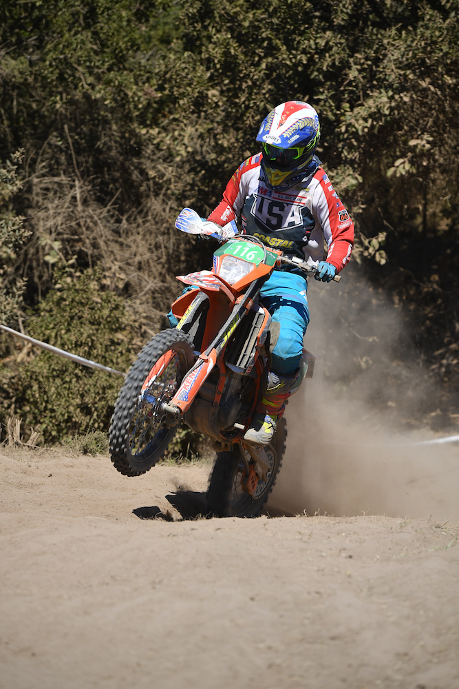 In the Junior World Trophy division, France seemed to falter while the U.S. threesome of Grant Baylor, Ben Kelley and Josh Toth all had fairly solid rides. Kelley admitted he fell in the first test the second time around and lost his rhythm in the following two tests. It’s unusual to see the Americans crash so often and Kelley explained, “I think it’s mainly the terrain; it’s super-hardpacked, and the little bit of dust on top makes it super-slippery so it’s hard to keep the bike straight. The tests got super-rough [today] so your bike is all over the place.