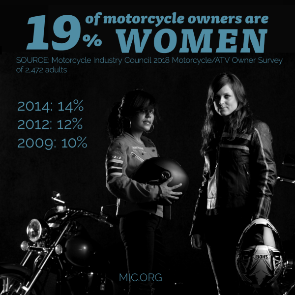 The MIC polled 2,472 adults nationwide for the 2018 Motorcycle/ATV Owner Survey. For decades, the MIC surveys have served as the census of motorcycling, and have tracked a steady growth in the percentage of women who own bikes.