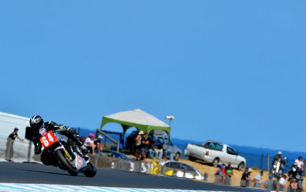 For the second International Challenge race mid-afternoon, it was American Josh Hayes—the four times AMA Superbike champion—who took the early lead after an impressive start. He was pursued by a host of riders including race one winner Aaron Morris, Melbourne’s Jed Metcher and for the USA, Larry Pegram.
