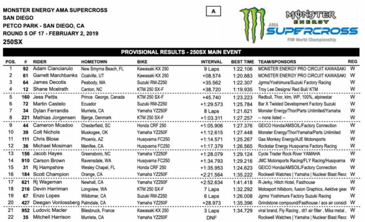 Cianciarulo Wins 250SX San Diego Supercross