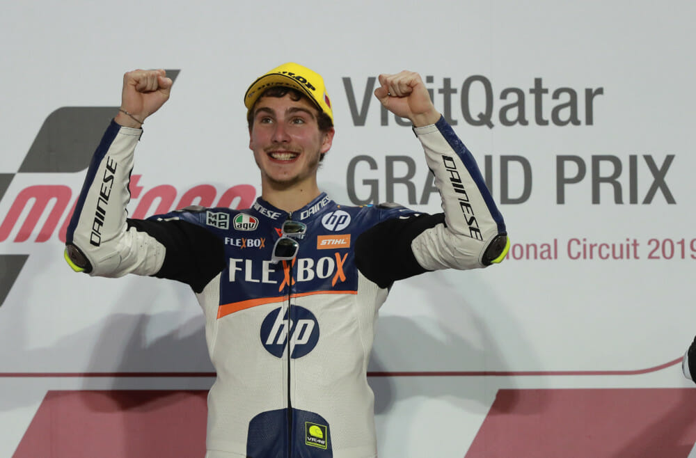 Behind the top seven, Luca Marini (SKY VR46 Kalex) had been losing speed throughout; while class rookie Enea Bastianini (Italtrans Kalex) made a brilliant debut in ninth, his final victim being front-row starter Xavi Vierge (EG-VDS Kalex). Vierge had led the first lap, but started losing ground almost immediately, with grip problems.