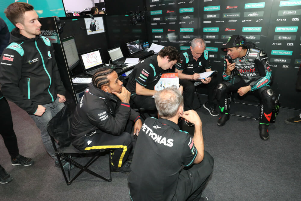 Hamilton, en route to the first car GP of the year in Australia, is a keen and reportedly extremely fast motorcyclist and fan of MotoGP, and according to Petronas Yamaha rider Franco Morbidelli “asked a lot of questions about how I was riding.