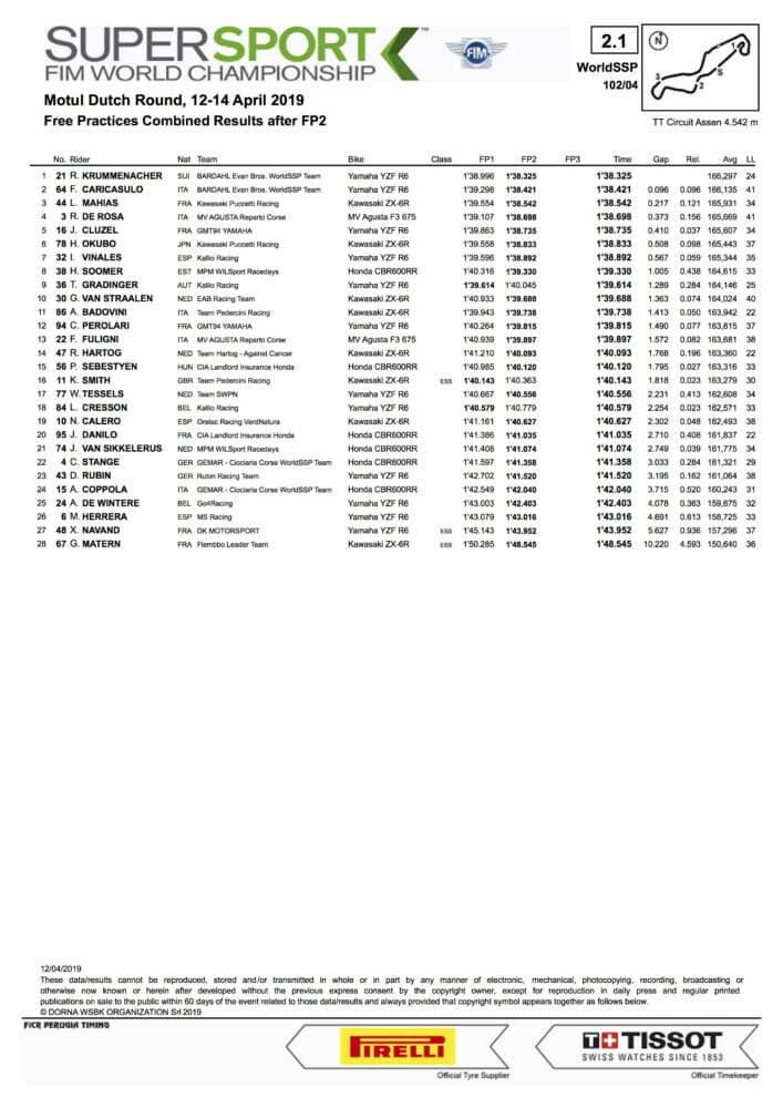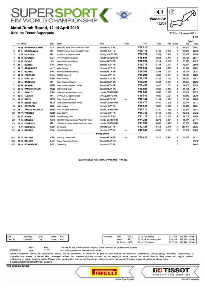 2019 Assen World Superbike Results—WorldSSP Superpole