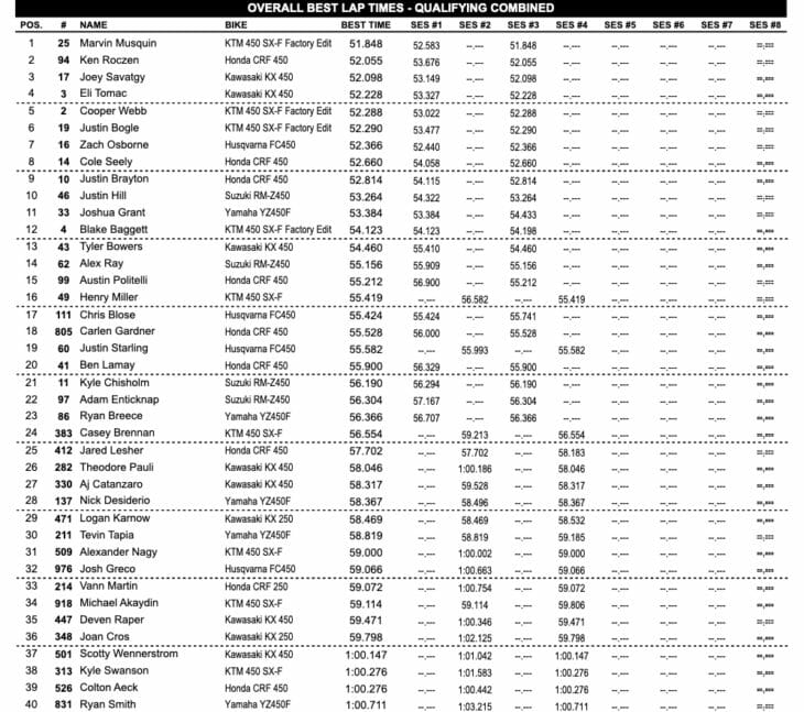 East Rutherford Supercross 450SX Qualifying Results