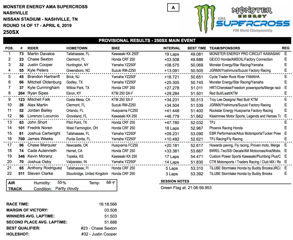 Nashville Supercross Results 2019