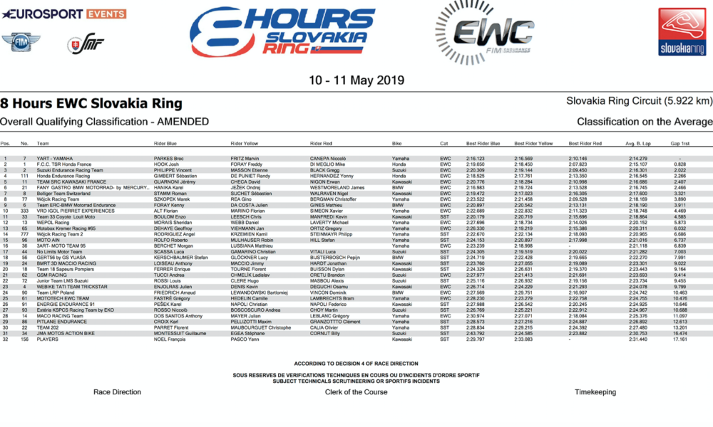 2019 8 Hours of Slovakia Ring Qualifying Results