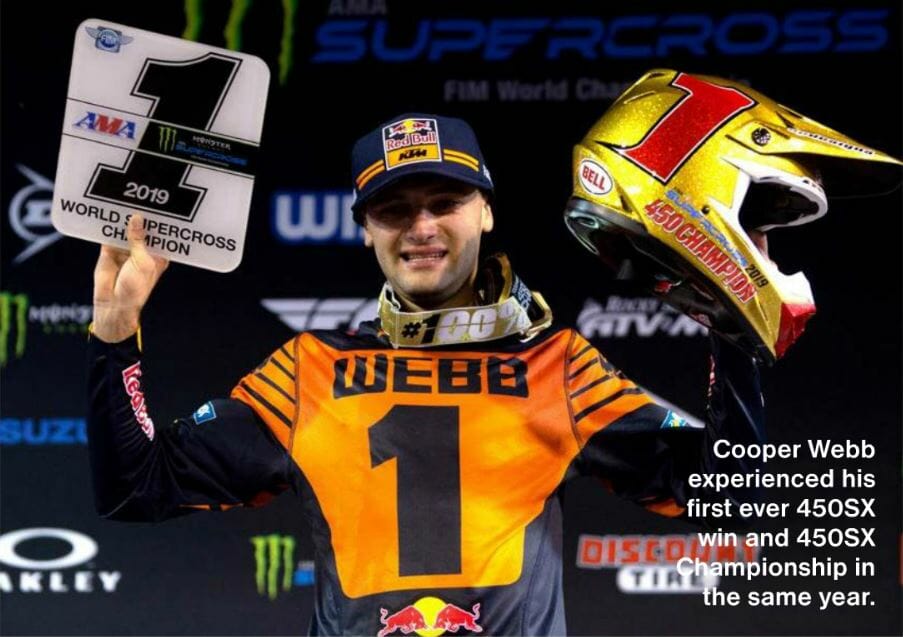 At this moment the Webb championship doesn’t seem all that surprising, he did after all win a series leading seven rounds, but going into the season in January, most experts and fans viewed Webb as a longshot. Think about it – Webb hadn’t even won a premier Supercross main event coming into the 2019 season.