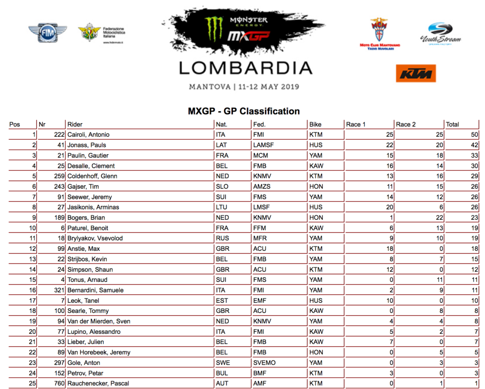 Mantova MXGP Results 2019