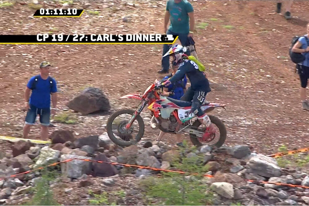 Spain’s Mario Roman rounded out the podium, he passed his Sherco teammate Wade Young in the Carl’s Diner section and held the position to the finish, 5:33 behind Jarvis. Alfredo Gomez finished fourth on his Husqvarna and Young rounded out the top five.
