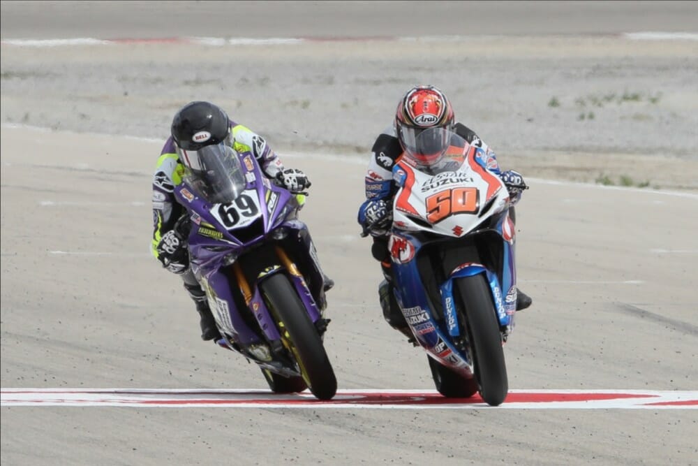 In the hotly contested Supersport class, Sunday’s race was a story of the hunter and the hunted. M4 ECSTAR Suzuki’s Bobby Fong got the jump on polesitter and Rickdiculous Racing Yamaha rider Hayden Gillim in the beginning of the 19-lap race, but Gillim managed to get past Fong in fairly short fashion. Fong stalked Gillim until the final turn on the final lap and drafted past him to snatch the victory by .003 of second.