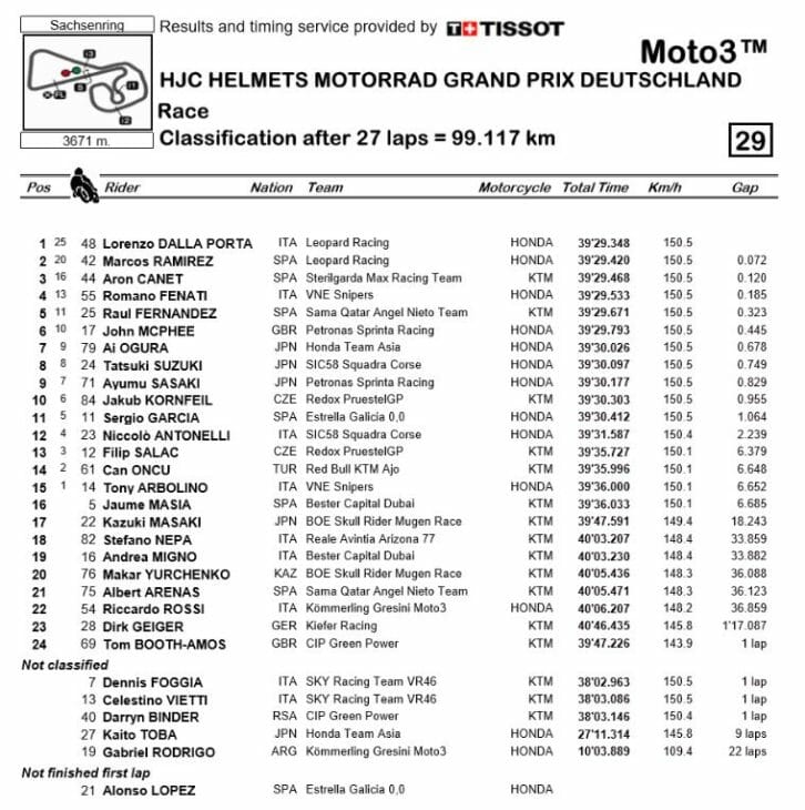 2019 German MotoGP Results and News—Moto3 Friday (click PDF)
