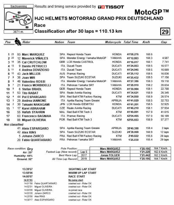 2019 German MotoGP Results and News—MotoGP Friday (click PDF)