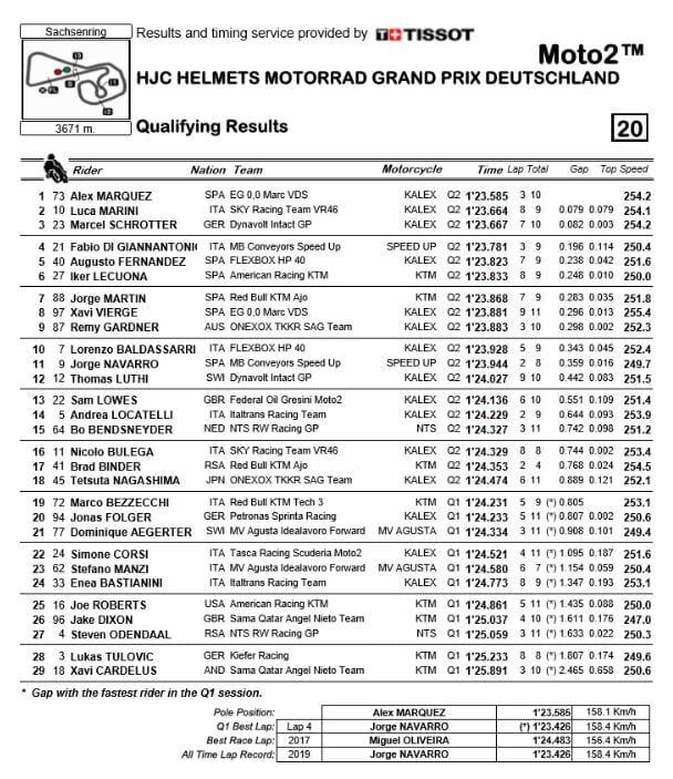 2019 German MotoGP Results and News—Moto2 Friday (click PDF)