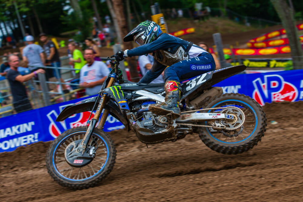 Just outside of the top five was Justin Barcia (Monster Energy Yamaha) in sixth, followed by Fredrik Noren (JGR-MX) who qualified within the top ten on his new factory ride. Ken Roczen ( Honda HRC) had solid starts in both motos, being within the top five of both races; after falling back drastically, he stole 9th place overall. After qualifying 33rd on his first race back after his injury, Aaron Plessinger (Monster Energy Yamaha) earned 17th at the end of the day.