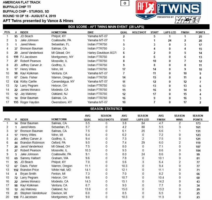 2019 Buffalo Chip TT American Flat Track Results