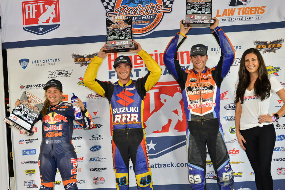 Earlier in the evening, Rispoli and Gauthier looked capable of defending Black Hills Harley-Davidson’s home turf with a potential 1-2 after sweeping the Semis, but both riders struggled off the line in the Main. Together, they steamrolled up the order and traded third back and forth multiple times late before pulling Addison into that battle to make it a fight for second.