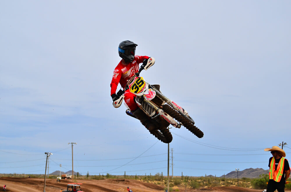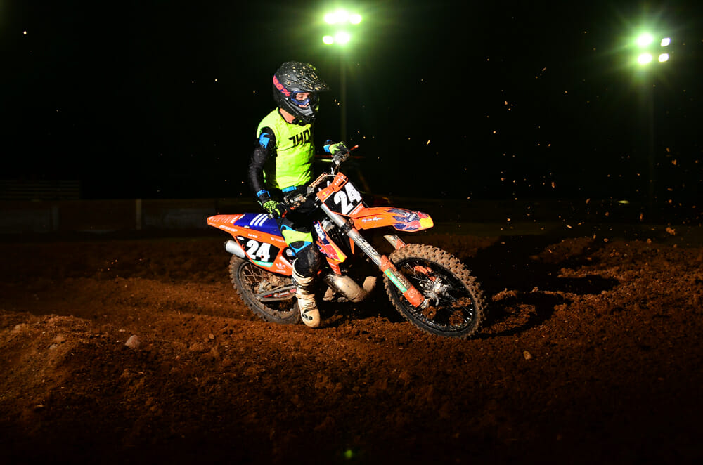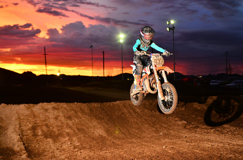 Peoria, AZ (August 3, 2019) — Canyon Motocross in Peoria, Arizona, hosted round two of its Monsoon Madness night racing series amid scorching 110-degree weather on Saturday, August 3. The series is a favorite among racers as it offers the only night moto racing opportunity in Arizona. With the monsoon season of Arizona in full effect, the track was surrounded by storms on all sides as racing started, although the track location remained dry and steady in temperature until nightfall. Starting the afternoon shortly before sunset, the first riders dropped the gate on moto one, racing into the night and finishing moto two under the lights.