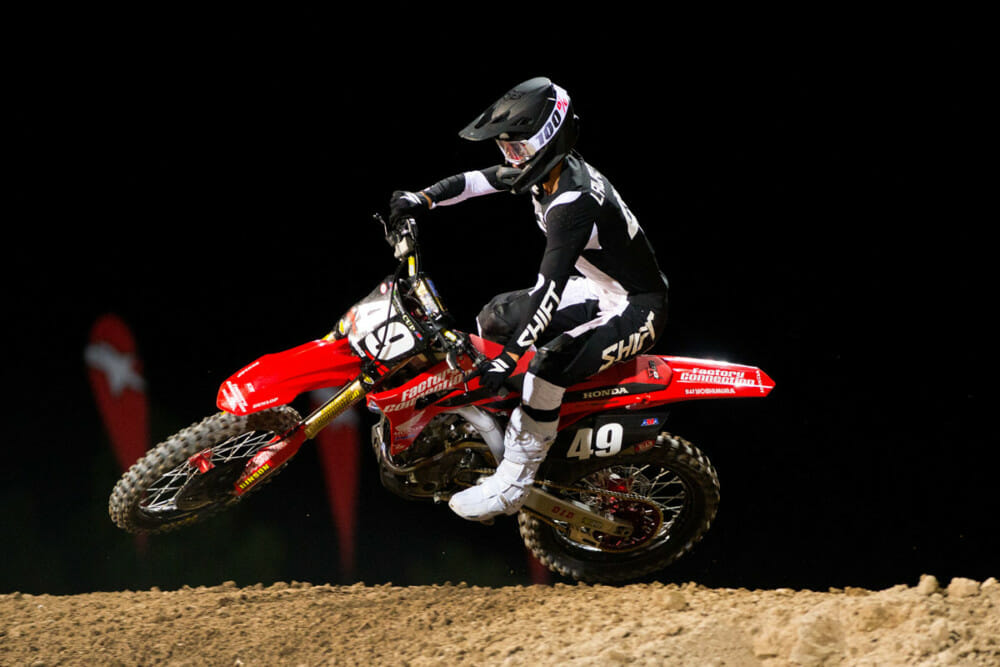 Chad Reed, on his new cbdMD-backed Honda, had to qualify for the night show through the LCQ, where he finished third. He was still getting the mapping right on his new Mountain Motorsports-supplied CRF450R prior to the night show.