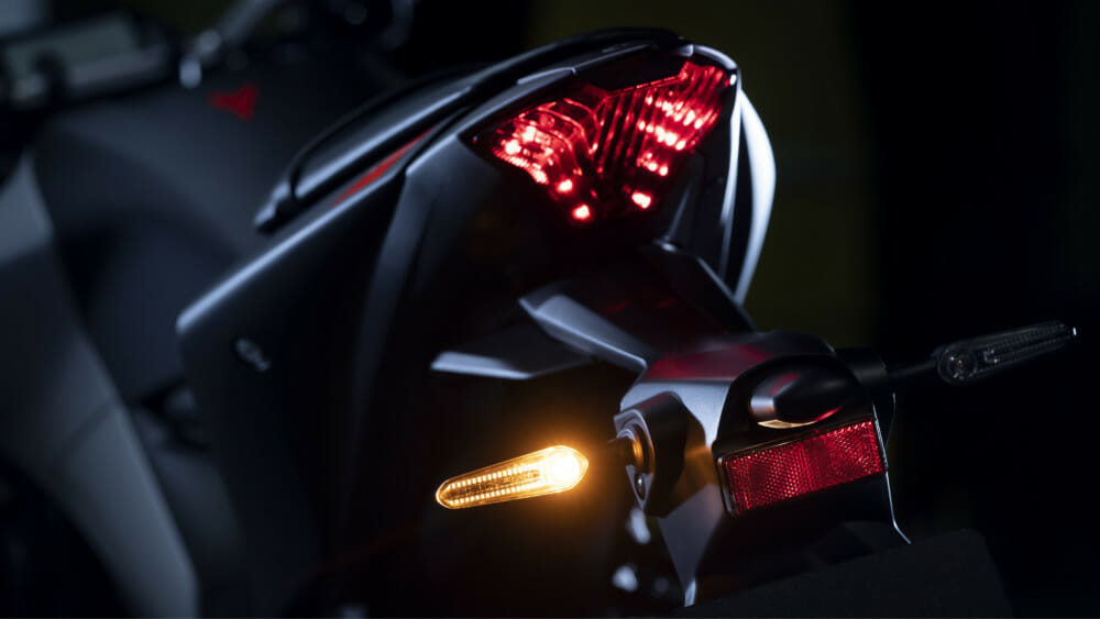 The suspension is taken care of by an unadjustable 37mm KYB inverted fork and preload adjustable shock, twin 298mm/twin-piston caliper front brakes with ABS and 30.7-inch seat height, perfect for new riders or riders with a shorter inseam, as is the claimed wet weight at 373 lb.