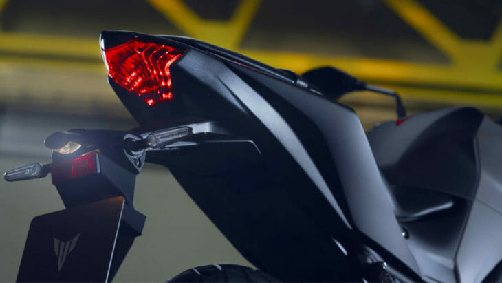 Based off the Yamaha YZF-R3 with the same 321cc twin-cylinder motor and base chassis, the MT-03 takes design cues from the bigger brothers in the MT-07, 09 and the R1-derived MT-10 with a two-position LED headlight, LCD dash, aggressive lines down the side of the tank and the same sharp tail seen on the R3.