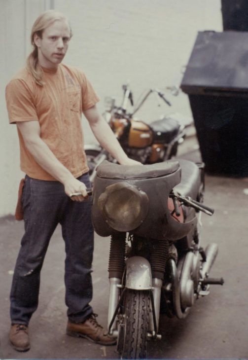 Once in California, Tolhurst was visiting a buddy in college in Palo Alto. Together they crated up the bike and had arrangements with a trucking company to pick it up the next day. “The next morning these guys were attempting to pick up the motorcycle, but it was not the company I had hired,” Neil explained. “We’re looking at this from Mark’s dorm room window and we go running downstairs to confront these guys and turns out they’d been hired by somebody who’d observed the bike being crated and sitting outside the dorm and they were trying to steal it.”