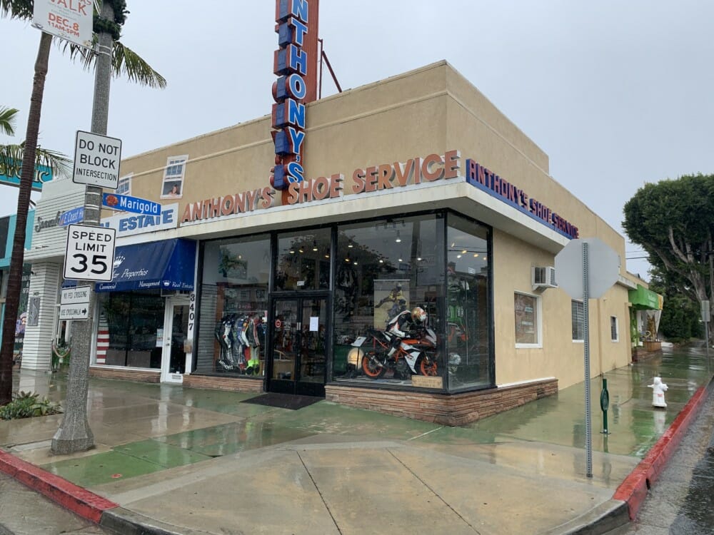 Greg Sermabeikian is the man responsible for this little biking corner of Corona Del Mar, but he also repairs anything made of leather, from Gucci handbags to wallets, pants and of course, expensive shoes. Personally, I thought my suit was going to be at least a big job, if not trashed.