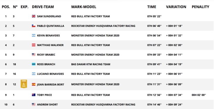 2020 Dakar Rally Motorcycle Results—Stage Seven