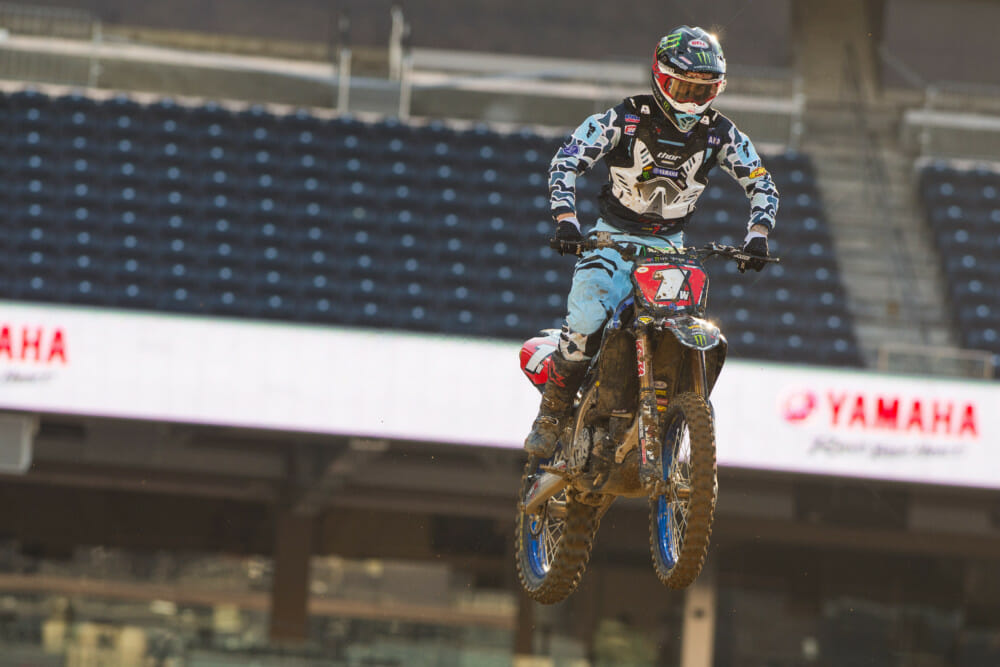 In 250SX West qualifying, Dylan Ferrandis actually topped Cianciarulo’s 450SX time, with the Monster Energy/Yamalube/Star Racing Yamaha pilot recording a 48.991. He also did it on the last lap of qualifying. Monster Energy/Pro Circuit Kawasaki’s Ausitn Forkner was the only 250SX racer in the 49s with a 49.228, and then over a second back came Ferrandis’s teammate Justin Cooper, with a 50.331.