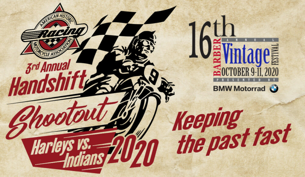 The third annual Handshift Shoot-Out will feature double-barrel action with back-to-back weekend racing on October 10-11, 2020 at the 16th Barber Vintage Festival, pitting Harley vs. Indian handshift 45 cubic-inch flathead racebikes.