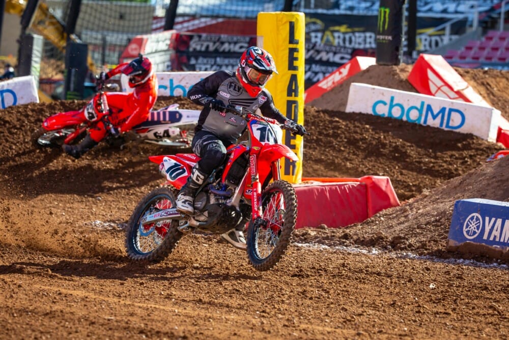 - Chase Sexton took an important step toward a successful defense of his 250SX East title with a flawless performance on Wednesday. After topping his heat race, the GEICO Honda rider nailed a strong start in the main, then put a hard lap-five pass on title-rival Shane Mcelrath to assume the lead. Sexton immediately built a comfortable margin and rode comfortably to the victory, stretching his margin to six points with only the final East/West Showdown remaining. Also riding well was Sexton’s teammate Jo Shimoda, the rookie scoring his best finish with a fifth–one ahead of Phoenix Racing Honda’s Kyle Peters. FXR/Chaparral Honda’s Chris Blose was eighth, and Manluk Racing’s Chase Marquier also made the top 10.