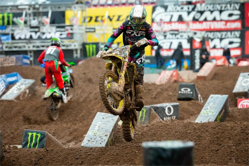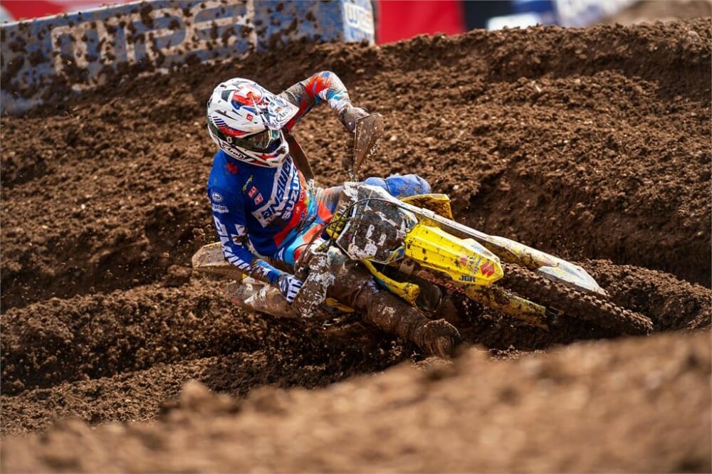 Brea, CA (June 8, 2020) – JGRMX/Yoshimura/Suzuki Racing’s Broc Tickle put forth a strong effort aboard his Suzuki RM-Z450 at round 13 of the 2020 Monster Energy Supercross series in Salt Lake City, Utah. Despite the heavy rains and shortened race day schedule, Tickle raced through the pain of a hand injury he incurred one week earlier while teammate Fredrik Noren was edged out of the main event due to rider contact.