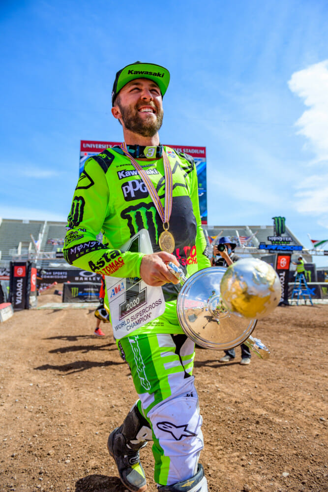 Oh, it’s everything. The 450 Supercross Championship is the pinnacle of our sport, I believe. So, man, it was everything to me. We’ve been so close two or three times and there were times where I was thinking in my head, ‘Man, will I ever get this done?’ It was so cool to finish it off. You look at the past history and guys haven’t won and it’s a relief, and there is some truth to that. When you look at the past and when you look at the statistics, guys haven’t won past age 26. We broke that track record. I’m the oldest guy to win his first championship in the premier class. Numbers are numbers and I was always competitive for wins, and I never settled. I always kept saying, ‘I don’t want to settle. I’ve gotten so many wins and not having a Supercross title has been a huge empty spot in my career.’ Yeah, sometimes you second guess it, but one thing for sure, we’ve been competitive, and we still won races and we got it done. Yeah, to win it was relief.