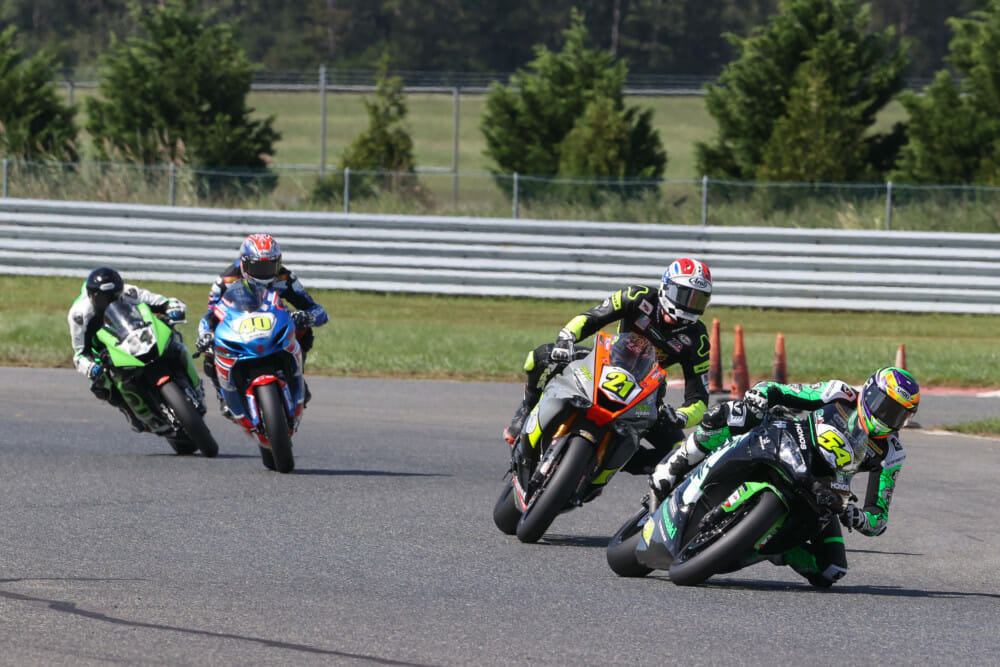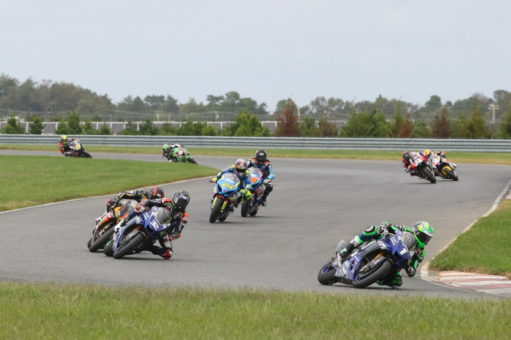 Celtic HSBK Racing Kawasaki rider Sam Lochoff, who slotted into second off the start, tenaciously maintained his position all the way to the checkers flag. Meanwhile, the battle of the race was for the third spot on the podium, and an overjoyed Bed Gloddy put himself and his Quarterley Racing/On Track Development Kawasaki on the box with a perfect draft-pass coming onto the front straight at NJMP.