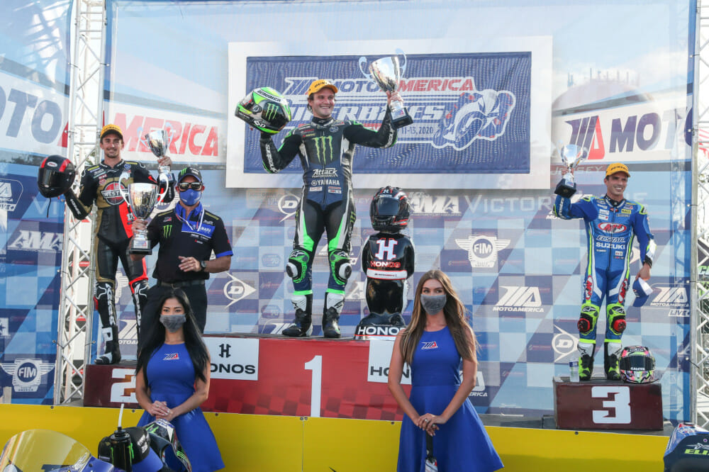 The other two riders who finished on the podium had a good battle throughout the majority of the 15-lap event, and Ride HVMC Racing’s Corey Alexander prevailed in second place over third-placed Michael Gilbert Racing’s Michael Gilbert, both riders aboard Kawasaki ZX-10R machines.