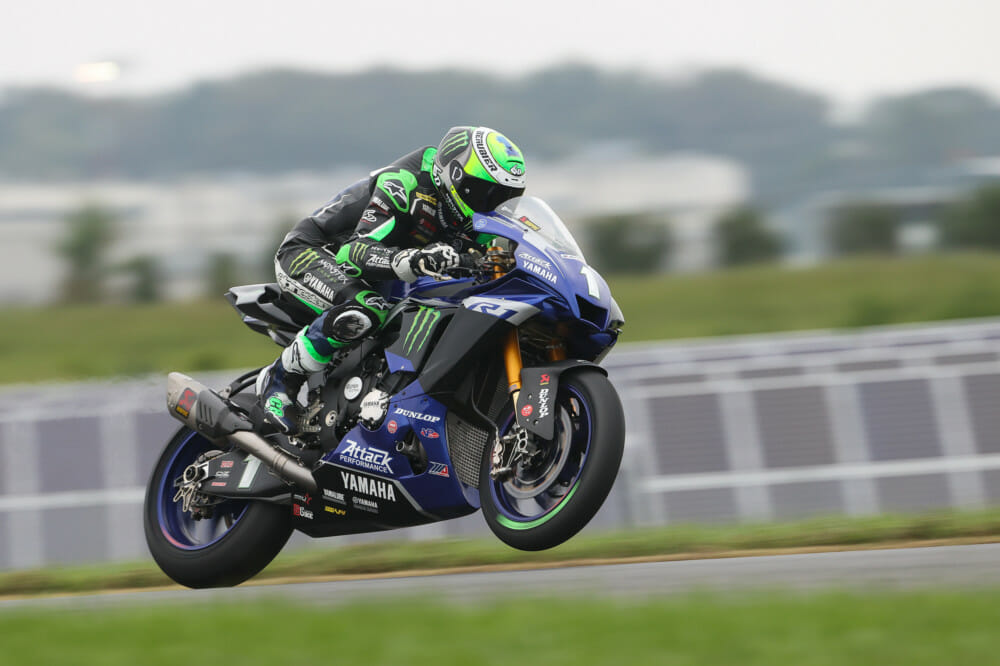 Iffy conditions ruled the day on a damp Friday at New Jersey Motorsports Park with Monster Energy Attack Performance Yamaha’s Cameron Beaubier tip-toeing through the puddles better than the rest to lead the first day of practice and qualifying in the HONOS Superbike class.