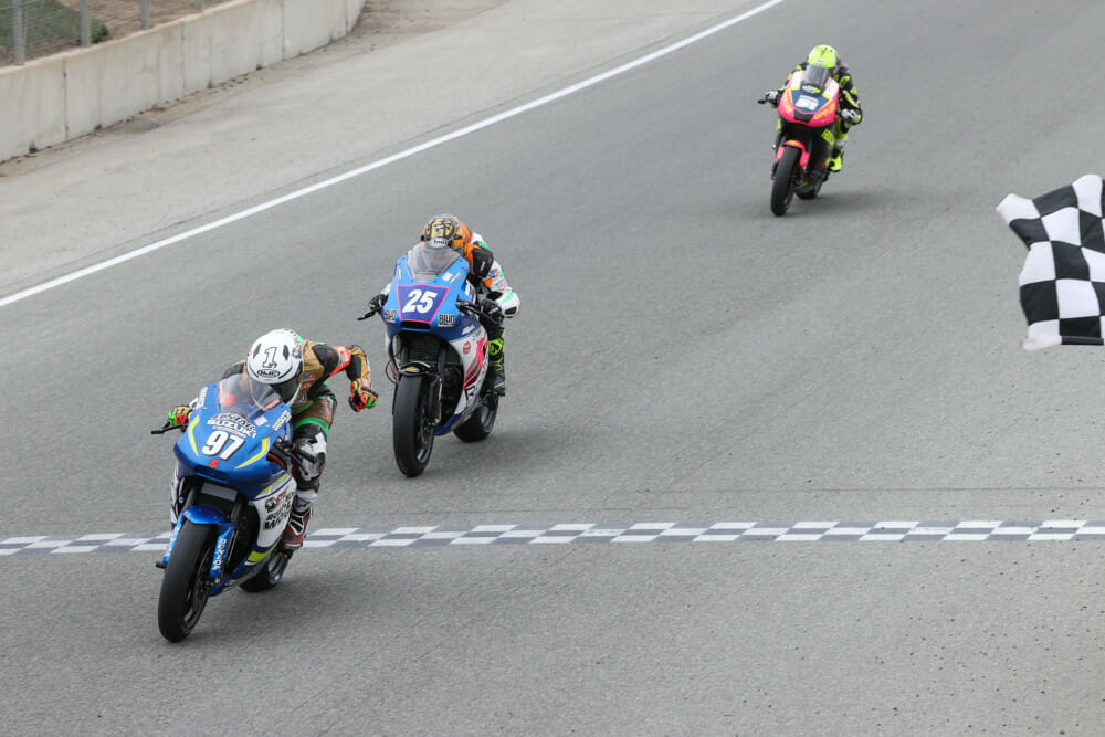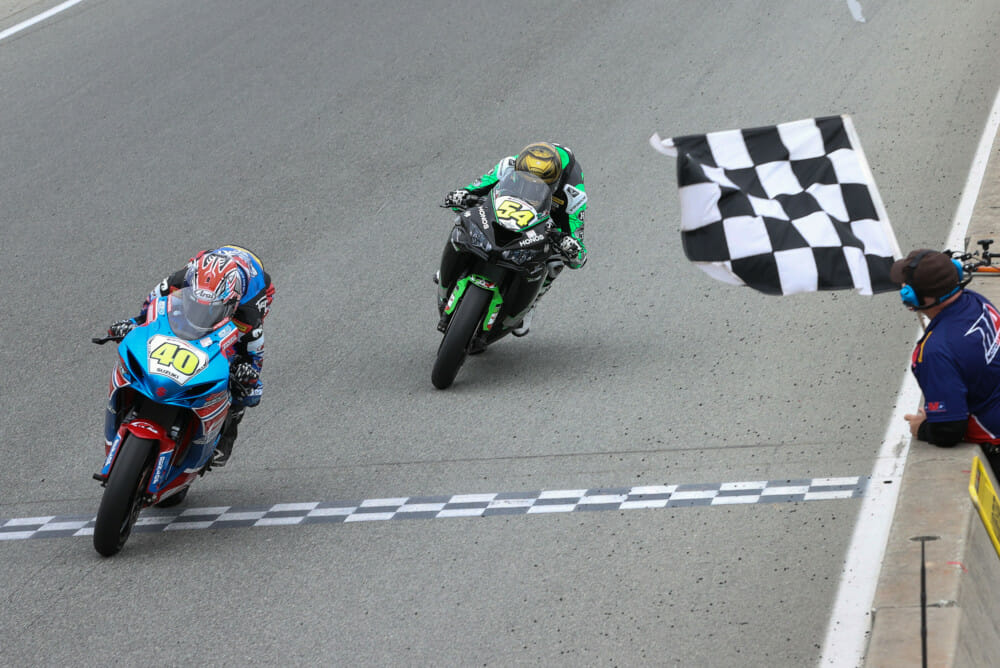 Warhorse HSBK Racing Ducati New York’s Lorenzo Zanetti also struggled in the opening laps in his first race at WeatherTech Raceway Laguna Seca, but once the tires came in, he moved forward, passing Beaubier’s teammate Jake Gagne in the closing stages to finish third. Gagne looked to have second in the bag after M4 ECSTAR Suzuki’s Bobby Fong crashed out of their battle. But Gagne ran into fueling issues that ultimately dropped him to fourth.
