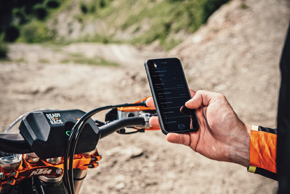 The myKTM App and Connectivity Unit Kit offer factory bike setup at the touch of a button.