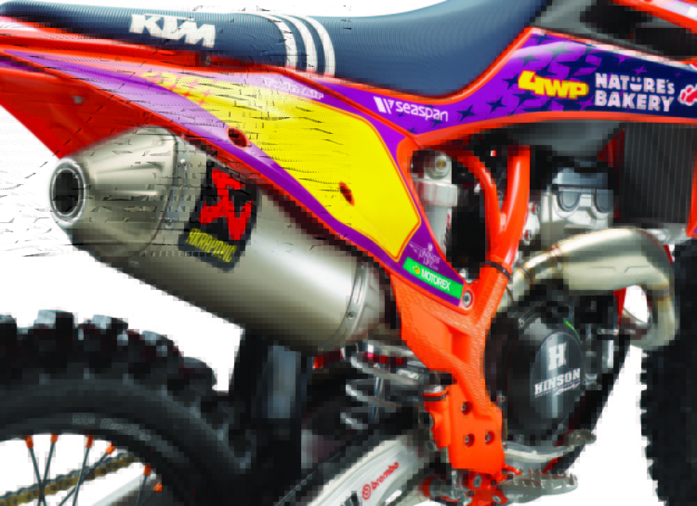 Designed to dominate the competition, a Factory start for the fork to lock in holeshots and a composite skid plate to protect vital components are also included. In addition, the bike has a semi-floating front disc ensuring maximum braking performance, a front brake disc guard, and a lightweight black aluminum rear sprocket. A billet Hinson clutch cover has been added for increased durability and to enhance the factory look.