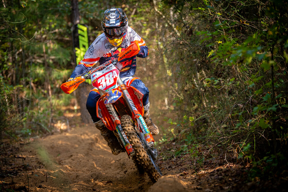 FMF/KTM’s Ben Kelley switched to a 350 XC-F for the Alabama round in hopes of shaking things up a bit, but a couple of mistakes kept him off the podium.