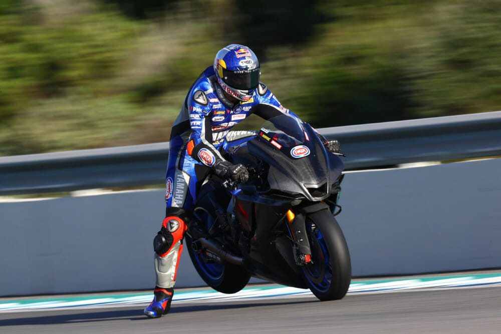 Early in the final day (on an X tire according to the team) Toprak Razgatlioglu (Pata Yamaha) took what was described as a ‘YMRE’ test bike to the third best time of all, behind only Rea and the HRC MotoGP test rider Stefan Bradl, making him second in the WorldSBK rankings.