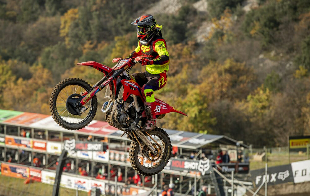 Tim Gajser clinched his third MXGP World Championship (and the fourth World title of his career) in Pietramurata, Italy, November 4. The Honda HRC Team rider from Slovenia sewed up the title a round early after the first moto, where he finished second to Yamaha’s Jeremy Seewer of Switzerland. Gajser went on to win the second moto to claim the overall victory ahead of Seewer (1-2) and Kawasaki’s Romain Febvre (5-3).